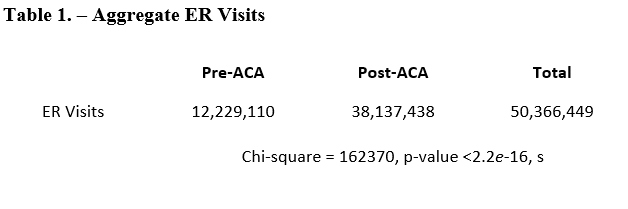 Comparison of Emergency Room Utilization for Non-Emergent Purposes Before and After the Implementation of the Affordable Care Act